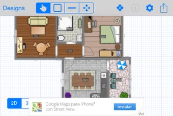 House Design - Free te muestra en tiempo real el plano, a medida que lo creas, y su versión en 3D, para navegar por ella cómodamente aprovechando la capacidad multitáctil de tu dispositivo iOS (iPhone o iPad).